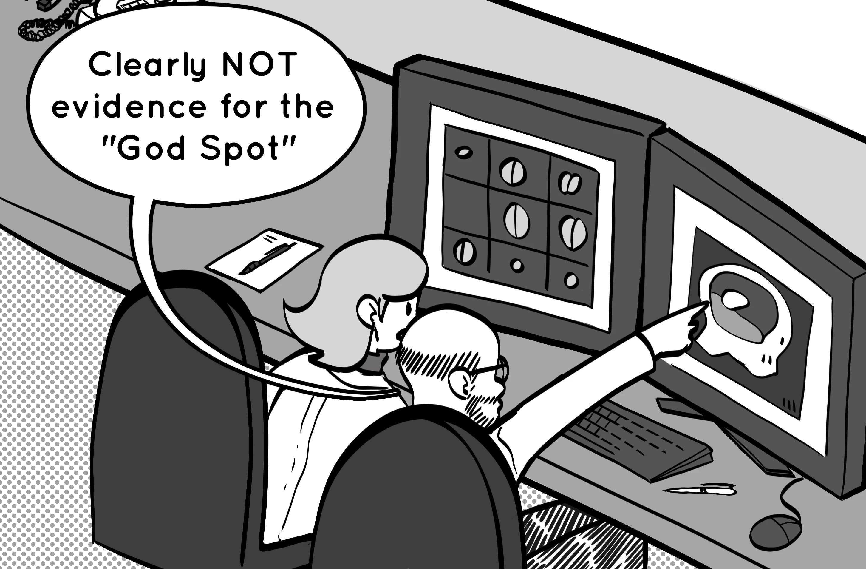 Advancements over the last few decades have led to non-invasive “brain scanning” techniques like MRI, EEG and MEG, which can record “images” of brain activity, often called “neuroimaging”. Cognitive neuroscientists can also temporarily alter the activity of neurons by using “neurostimulation” techniques like TMS. Finally, they can build computer models that mimic the brain’s architecture (“artificial neural networks”) and see whether these learn to perform tasks in the same way that human brains do. Below, we unpack some of these techniques, together with some of their pros and cons, using some light-hearted cartoons.